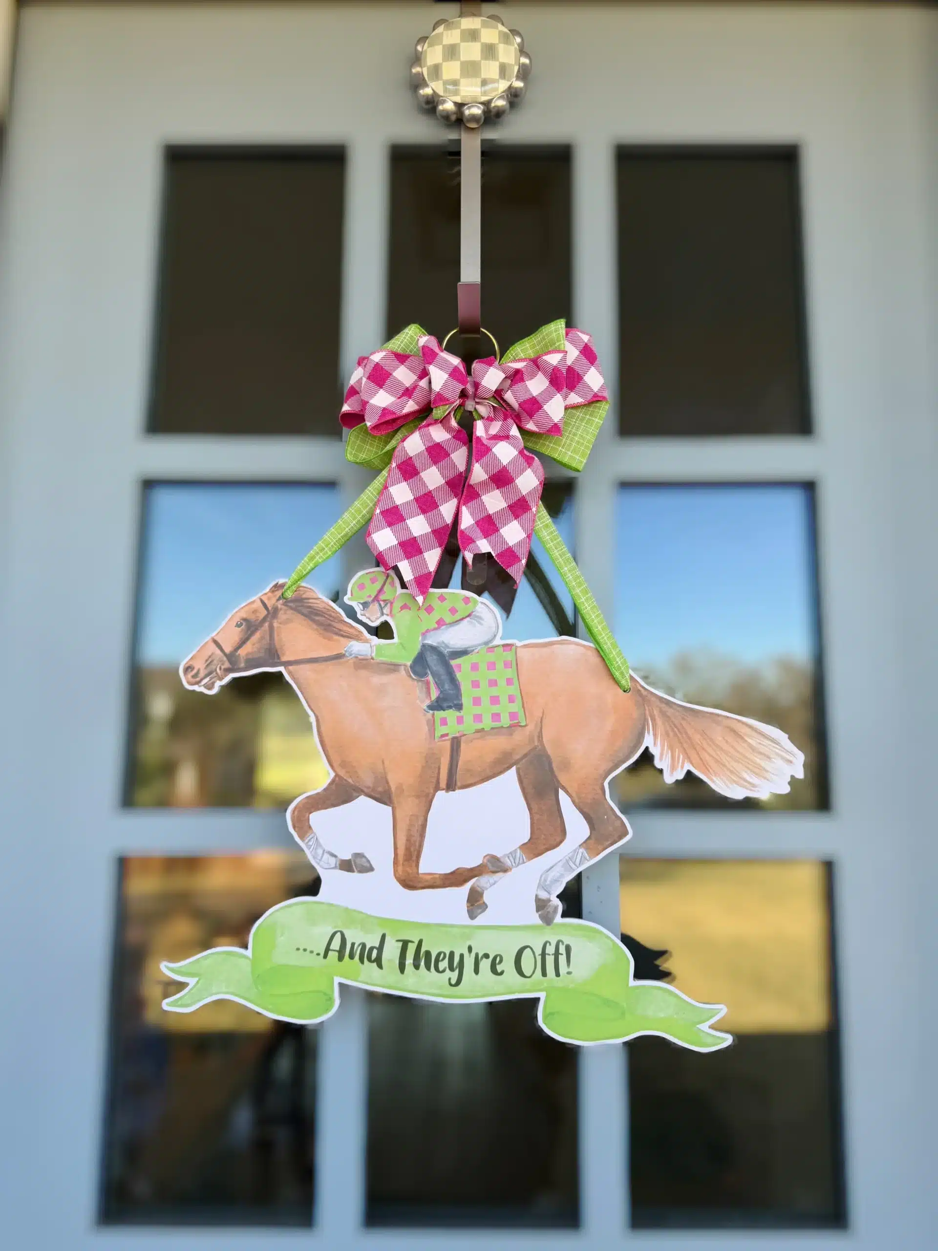 Celebrate Derby season with our And They’re Off Door Hanger in green. This lively watercolor design captures the excitement of race day and is perfect for Derby parties, spring gatherings, or welcoming guests for the big race.
