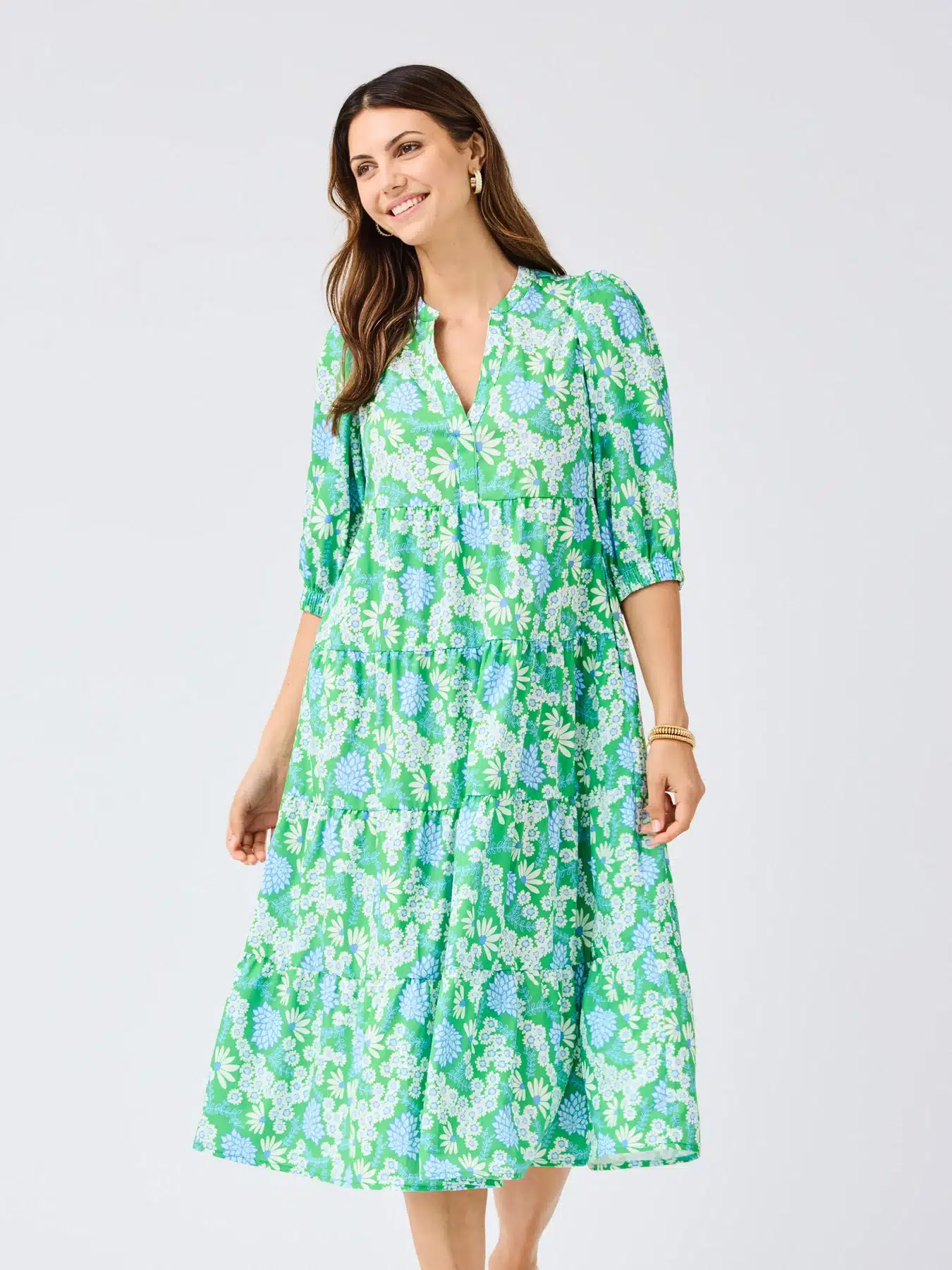 The Cameron Dress combines effortless elegance with modern style. With its puff sleeve detail and elastic cuffs, it creates a flattering, feminine silhouette that’s both comfortable and chic. The midi length adds a timeless touch, making it perfect for any occasion, from casual outings to evening events.