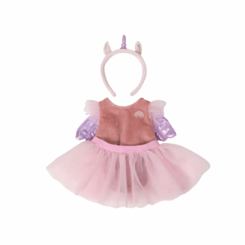 Itโs time for your Dinkum Dollย to step into a world of magic with the Unicorn Outfit! This enchanting ensemble features a beautiful tutu dress and shimmering upper, a sparkling unicorn headband and wings. With every twirl, your doll will shine with unicorn magic, ready for adventures in magical lands or special tea parties under rainbow skies. Designed for easy hands-on, simply slip on and this outfit transforms playtime into magic.