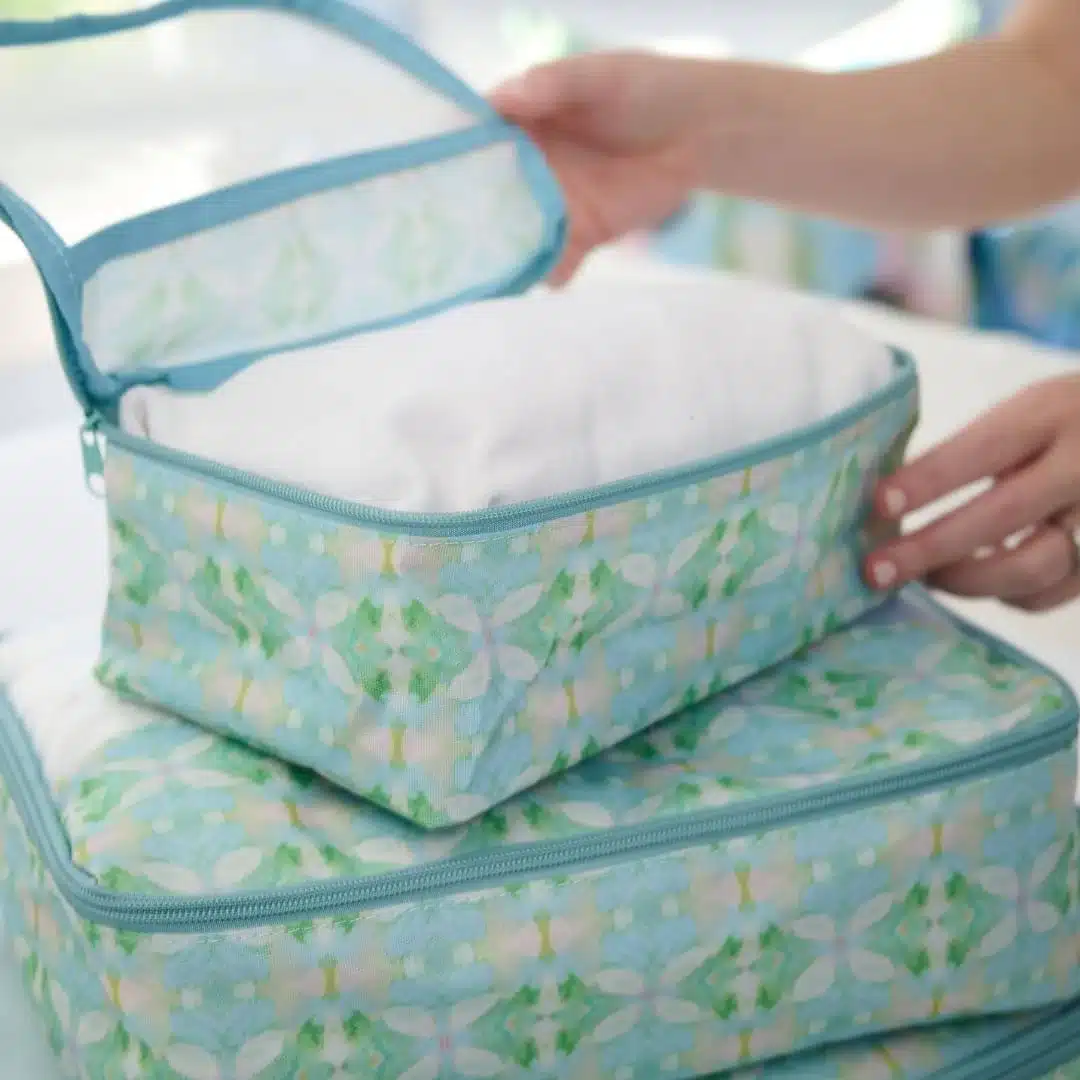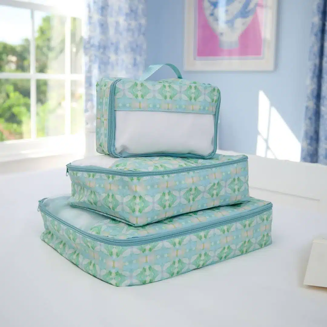 Bring color and order to every trip with our Elephant Falls Packing Cubes. Designed to make packing feel effortless, these cubes keep clothing neatly organized while adding a cheerful pop of pattern to your suitcase. Sold as a set of three with a travel laundry bag, they’re a must-have for organized, colorful travel.