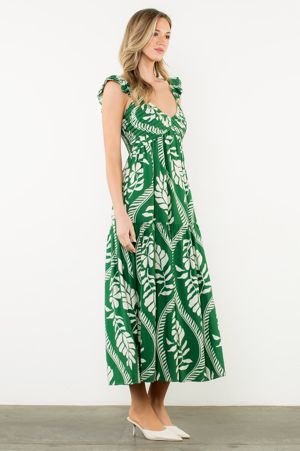 Green Flutter Sleeve Print Maxi Dress (3222)