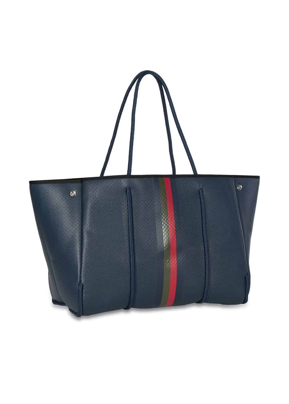 Navy coated with Navy/Olive/Red/Navy stripe detail