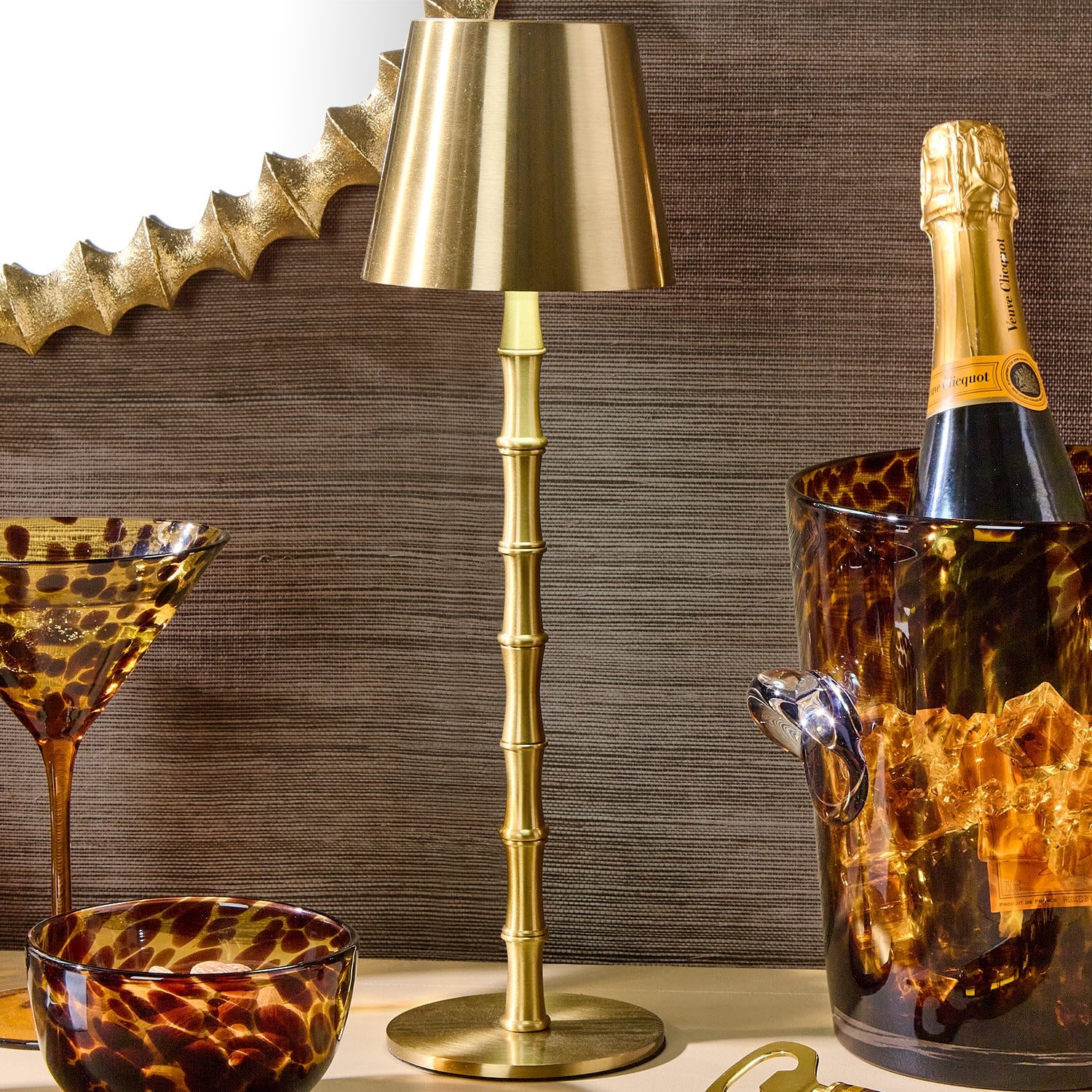Illuminate your space with the warm glow of our LED Cordless Gold Bamboo Table Lamp in Gift Box. This exquisite piece adds a touch of elegance and functionality to any room. Standing at X inches tall, this handcrafted iron lamp is designed with intricate bamboo detailing for a luxurious touch. The 4000 mAh rechargeable battery ensures long-lasting illumination, while the included USB cable allows for easy charging. Enjoy customizable brightness with 3 color stepless dimming options, from cozy warm white to refreshing cool white and vibrant daylight settings. Elevate your home dècor with this stylish and versatile lamp.