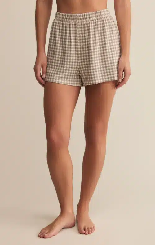 Easy does it in this relaxed high-rise short, made from our ultra-soft silky jersey fabric and finished with a classic gingham print. An elastic waistband keeps it comfy, whether you’re relaxing or staying in.