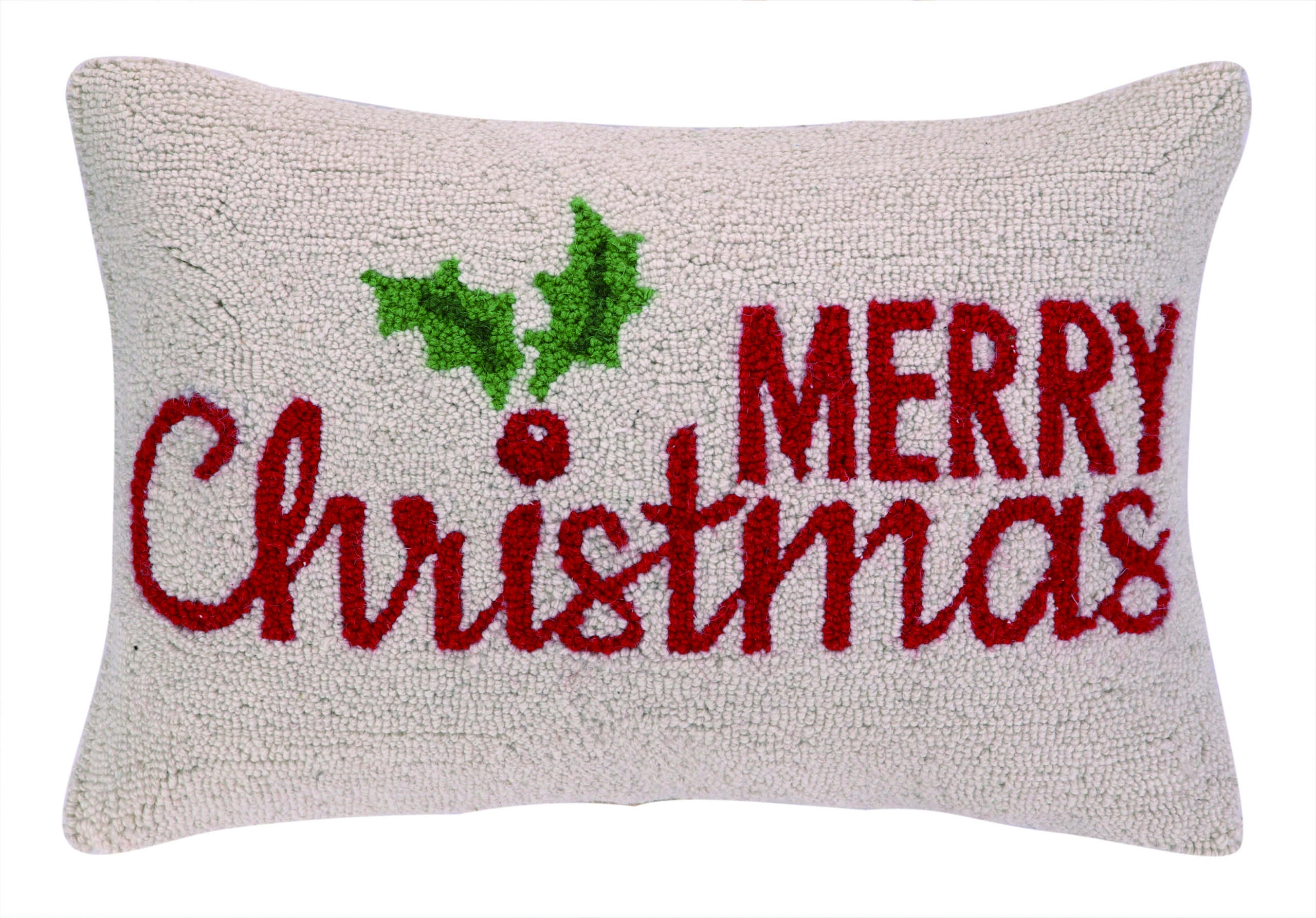 Merry Christmas Holly Hooked Pillow