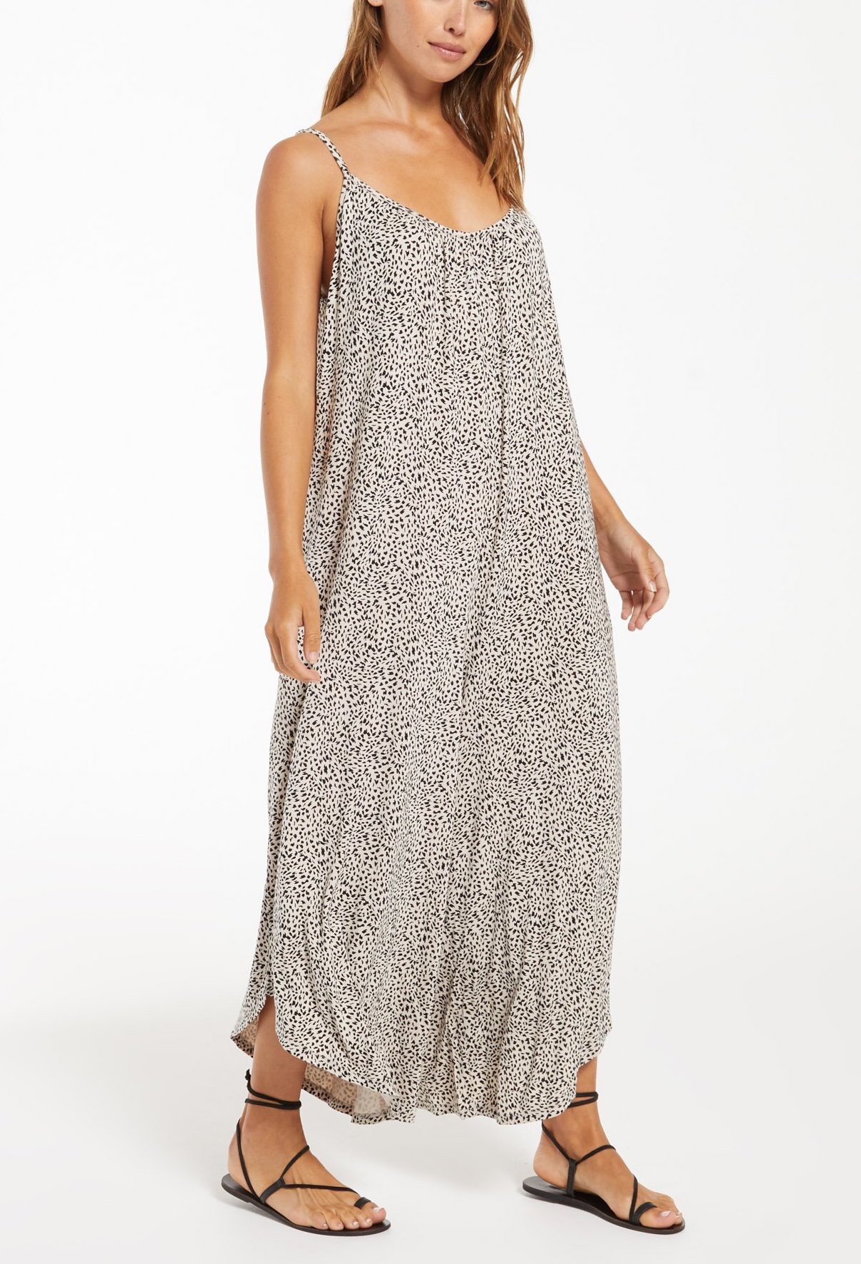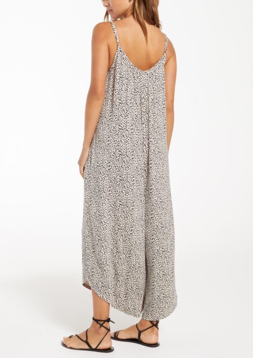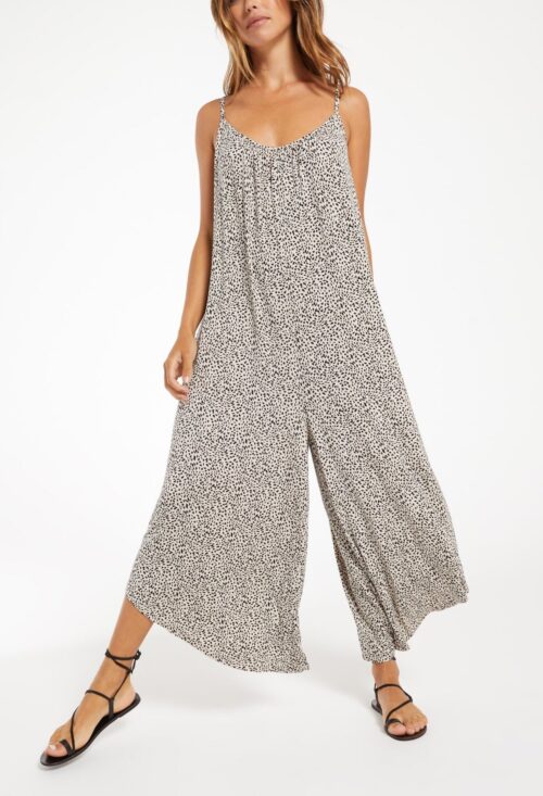 Mini Leopard Jumpsuit comes in our Sleek Jersey fabric featuring our chic mini leopard print, and will instantly become a go-to favorite. This comfortable jumpsuit is figure-flattering with a scoop neckline, adjustable straps, side pockets, and exaggerated wide pant legs for easy movement.