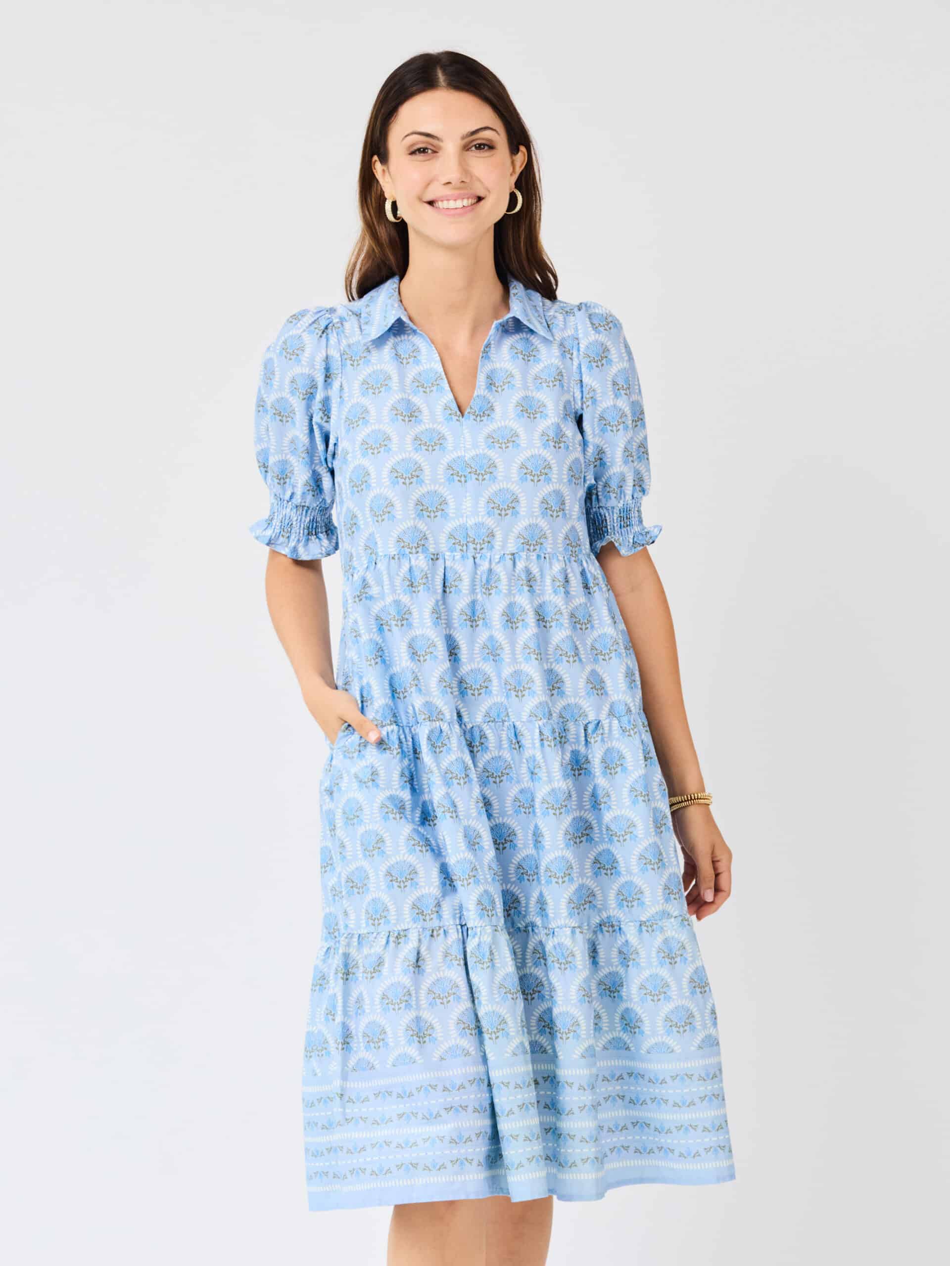 The Molly Dress is a best-selling favorite you’ll want to wear everywhere. Falling to a flattering midi length, it’s perfect for casual days or special occasions. A classic collar adds a touch of elegance, while smocked short puff sleeves bring playful, charming detail that makes getting dressed a little more fun.