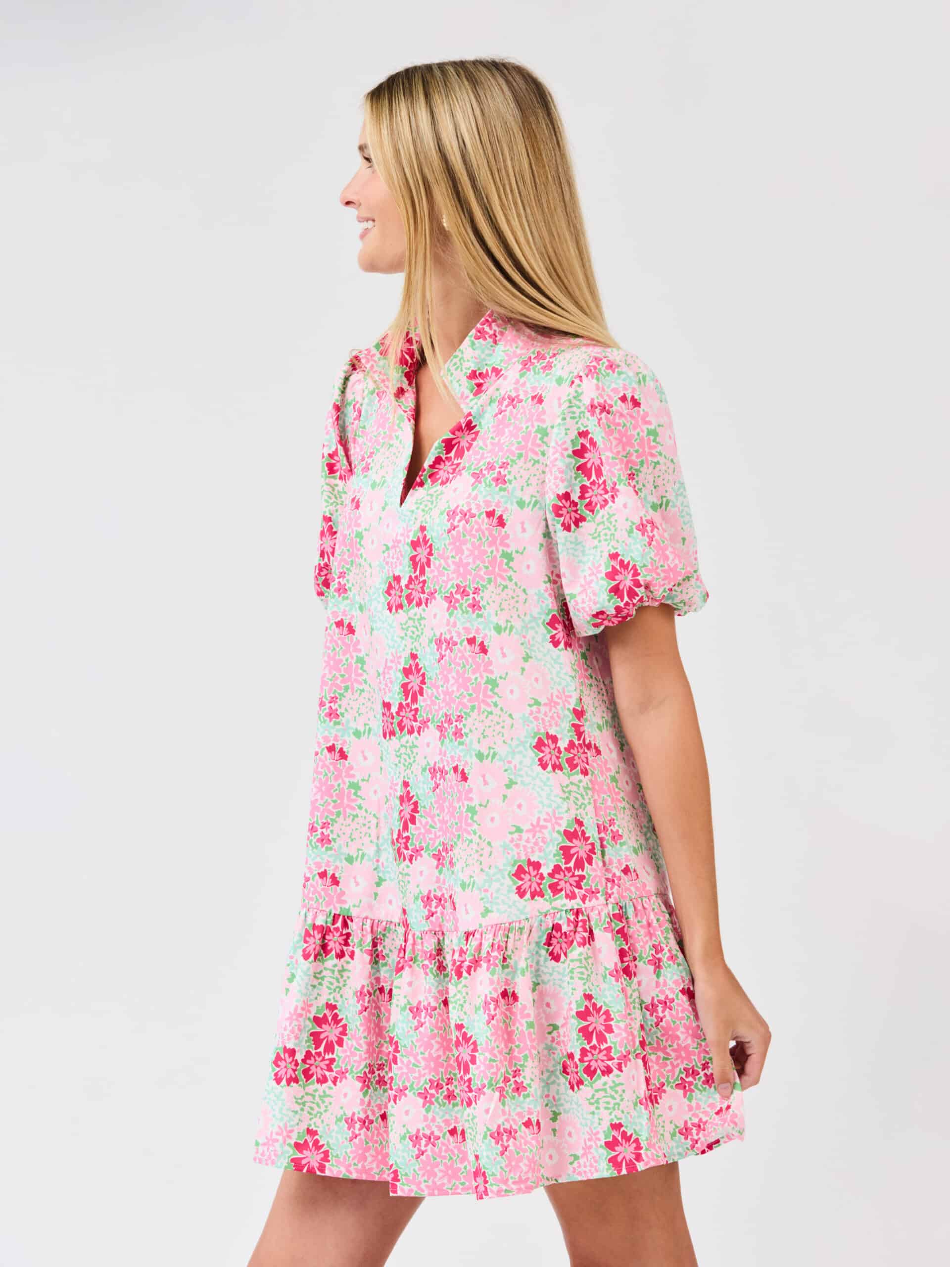 The Nancy Dress is full of charming details you’ll love. A stand ruffle collar and short puff sleeves with cuffs add a sweet, polished touch, while the tiered mini skirt moves with ease. Complete with pockets for everyday practicality, this dress is as effortless as it is stylish.