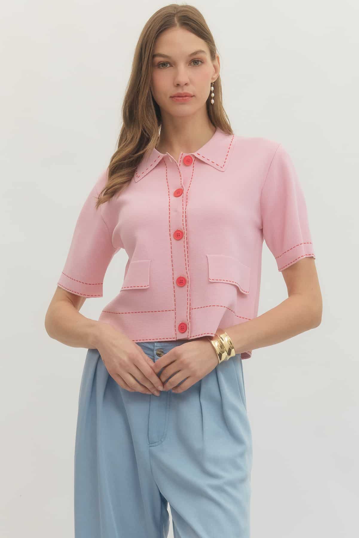 Pink Cardigan w/ Red Stitch (29618)