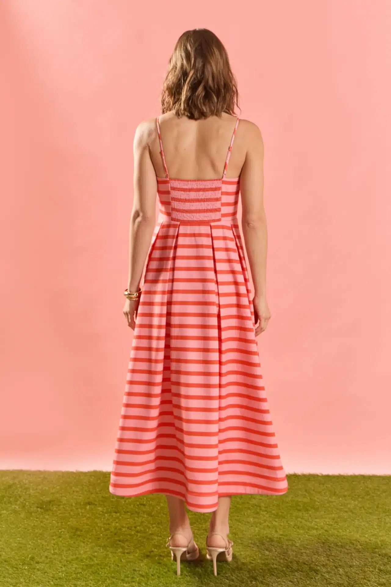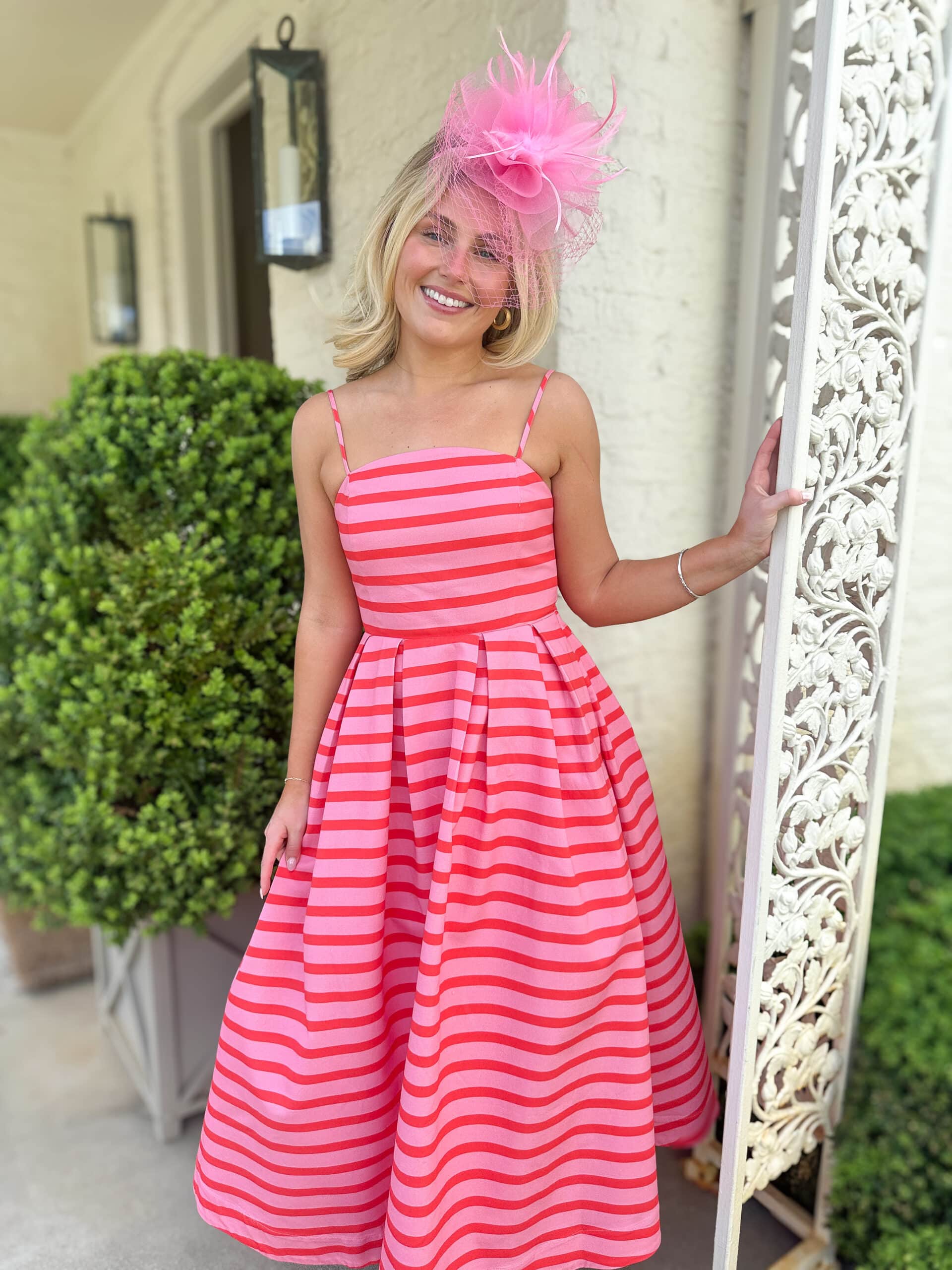 Pink & Orange Striped Midi Dress