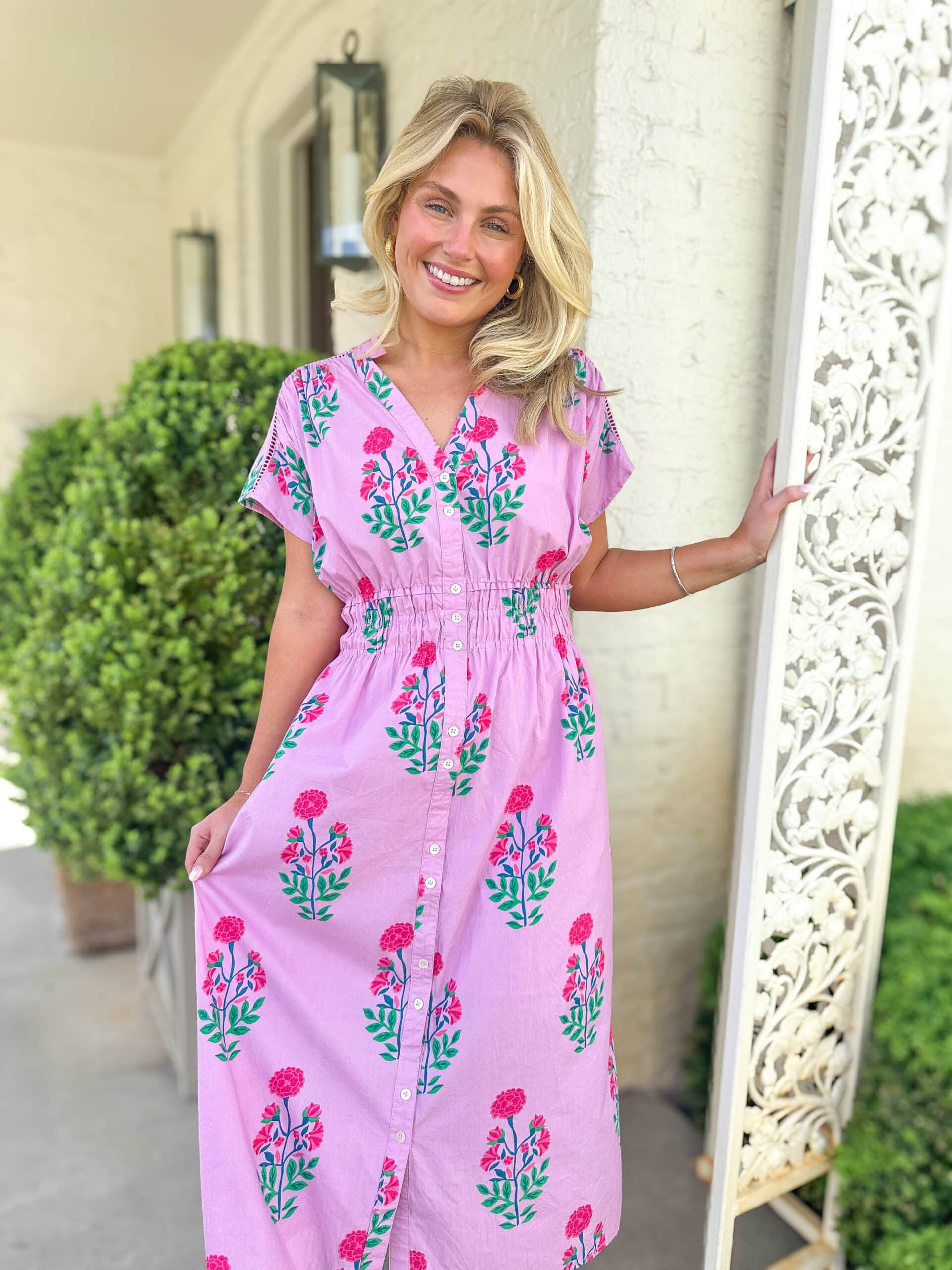 Pink SS Floral Print Midi Dress (2067)