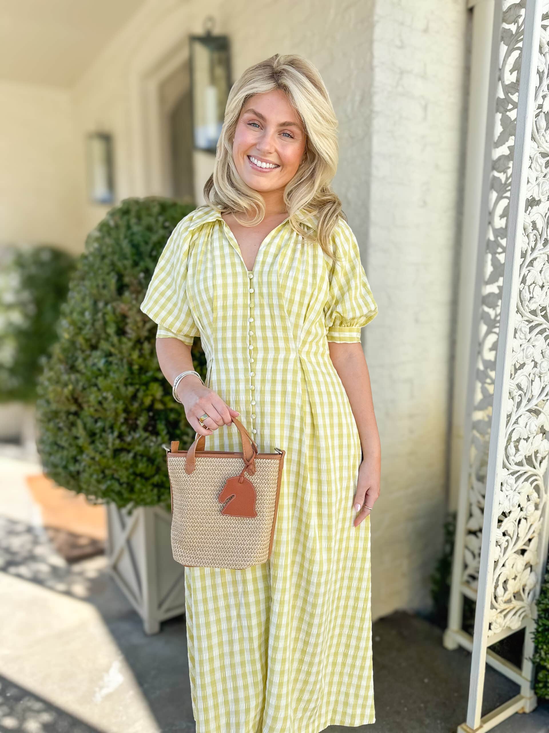 Pistachio Gingham Puff Sleeve Dress