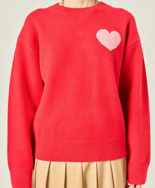 Cozy up in our Heart Sweater, made from a soft and comfortable knit fabric. The classic round neckline and long sleeves make it the perfect choice for chilly days. But what sets this sweater apart is the darling heart detail at the front, adding a sweet touch to your look. This versatile piece can be dressed up or down, making it a must-have for any fashionista’s wardrobe. Whether you’re curling up by the fire or heading out for a day of shopping, our Heart Sweater will keep you warm and stylish. Shop now for this season’s must-have knit.