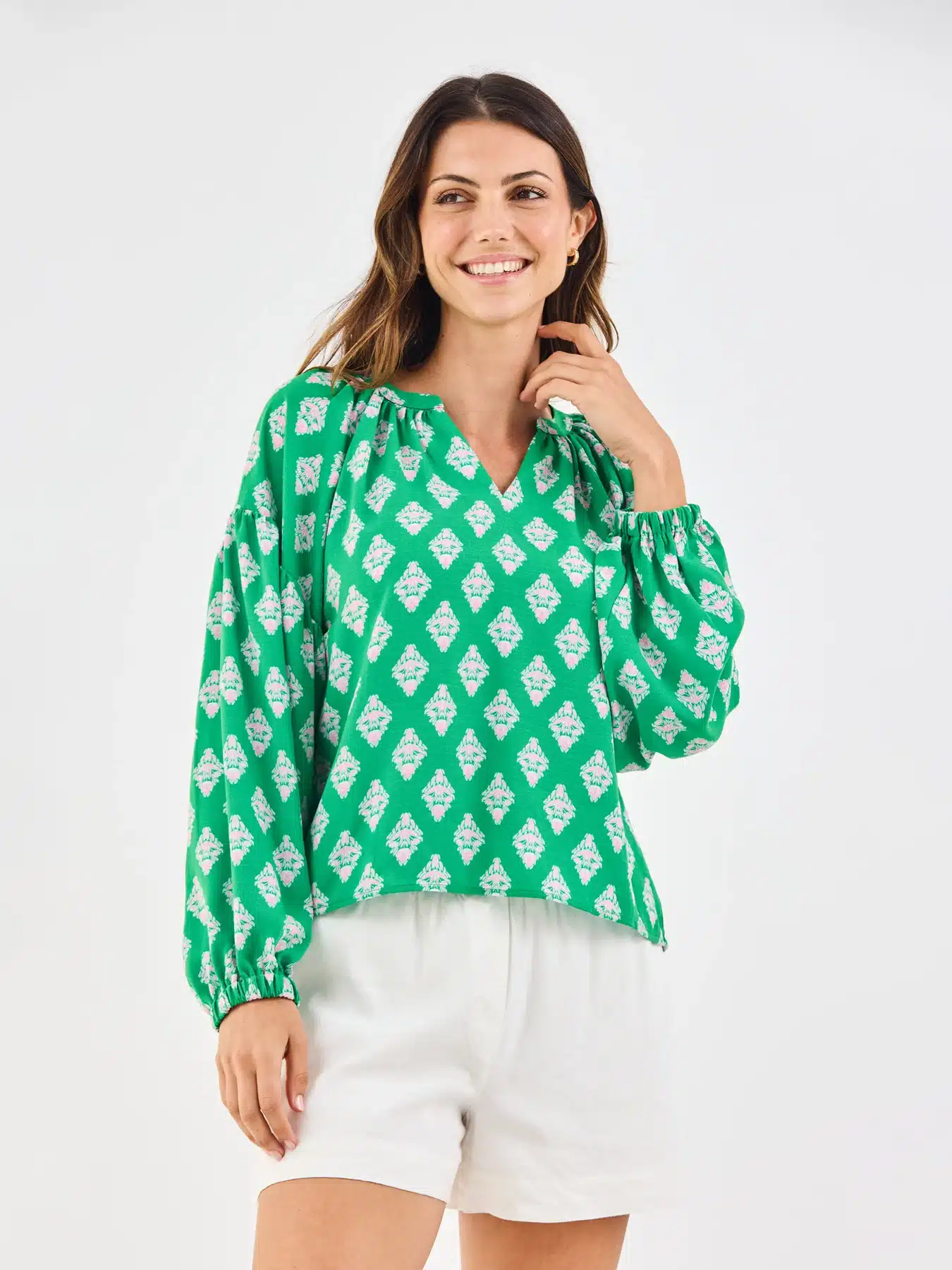 The Scarlette Top is all about relaxed style with just the right amount of detail. Designed with a flattering V-neckline, a flowy fit, and drop shoulder detailing, it drapes effortlessly for a laid-back look you’ll keep reaching for. Pair it with denim for everyday wear or style it with tailored bottoms for an easy, put-together feel.