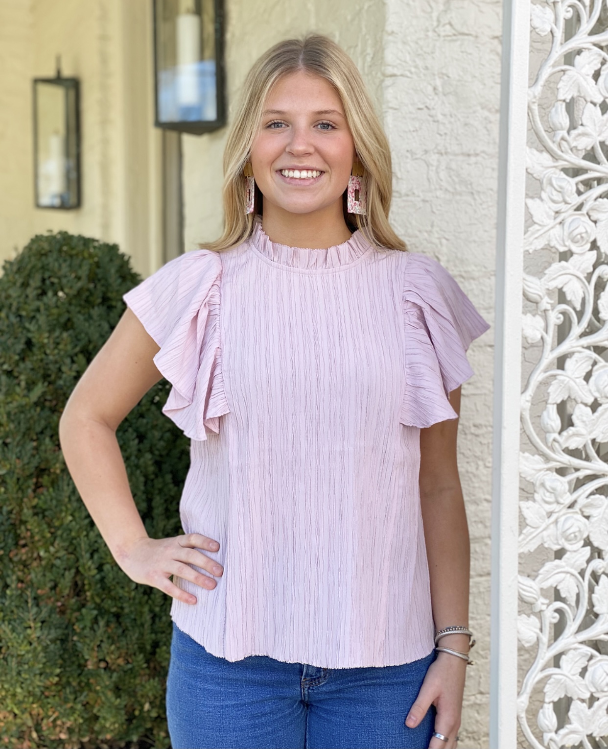 Smocked Flutter Sleeve Top (WCT1181)
