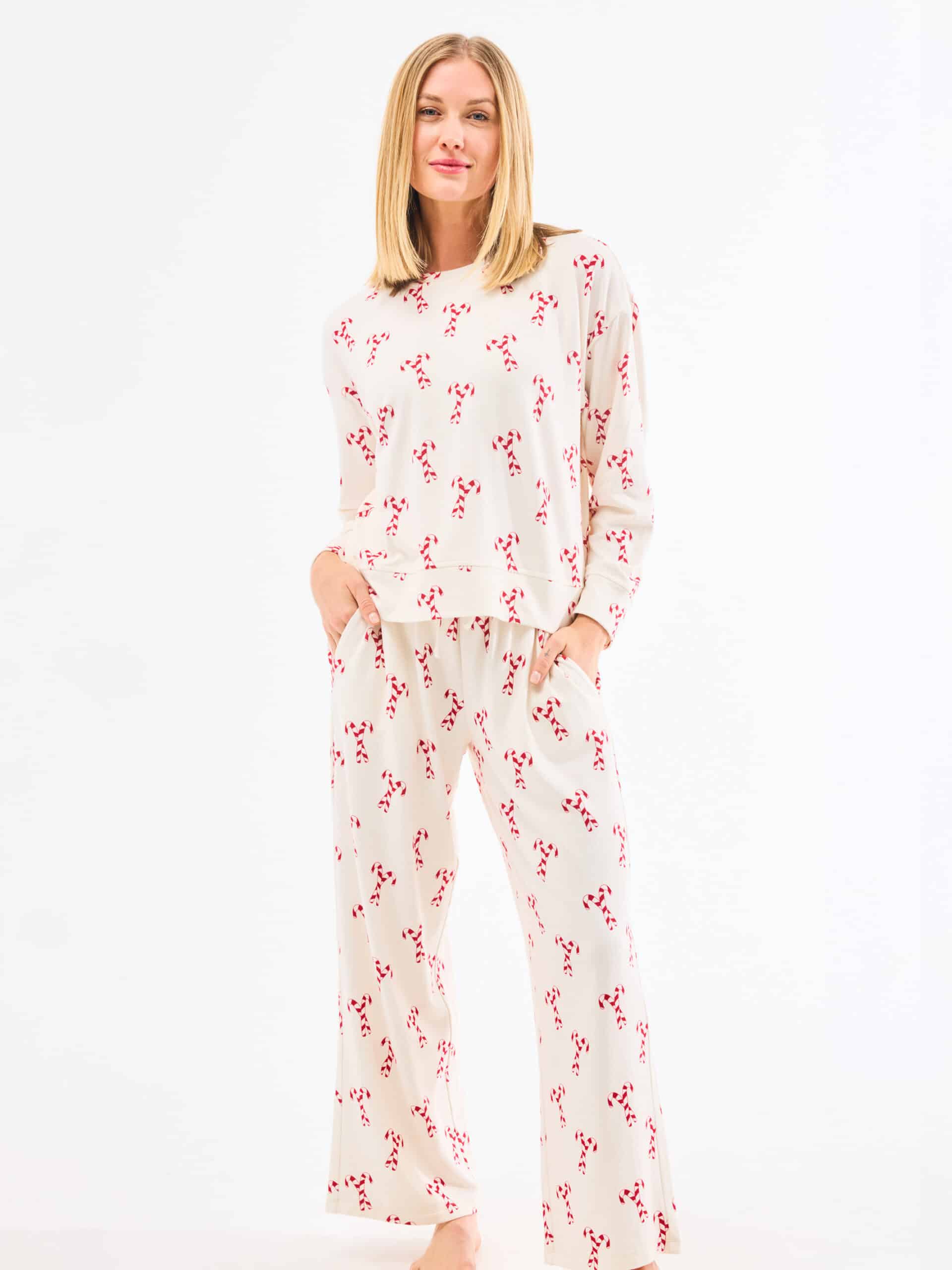 Our Holiday Sophie Set is designed for cozy days at home during the festive season. Made with our signature LuxSoft fabric, it’s unbelievably soft and comfortable for lounging, holiday movie nights, or Christmas morning. The crew neckline and relaxed fit of the top keep things easygoing, while the wide-leg pants with an elastic waistband and drawstring provide a comfy, adjustable fit. Perfect for sipping cocoa by the tree or enjoying holiday traditions, the Sophie Holiday Set brings warmth, comfort, and festive cheer to your loungewear collection.