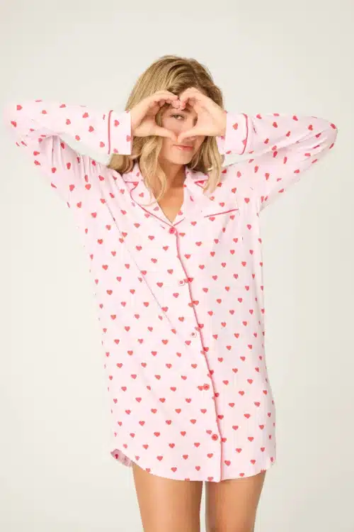 Cue the heart eyes. This relaxed-fit nightshirt is crafted from silky modal jersey and finished with contrast piping. The red heart print brings a playful touch to every good nightโ€™s sleep.